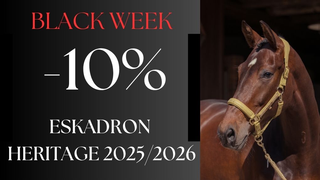 Czaprak firmy Eskadron z kolekcji Heritage 2025/2026. Wykonany z błyszczącego zewnętrznego materiału. Duże pikowanie o średnio grubym wypełnieniu. Wyposażony w silikonowe panele w miejscu siodła w celu jego lepszej stabilizacji. Lamówka ozdobiona blyszczącym sznurkiem oraz kryształkami. Materiał: 85% bawełny, 15% elastanu.