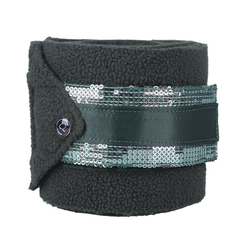 Bandaże polarowe firmy Equestrian Queen. Ozdobione rzędem kryształków.Wykonane z wysokogatunkowego polaru. Zapinane na rzepy. W komplecie 4 sztuki.