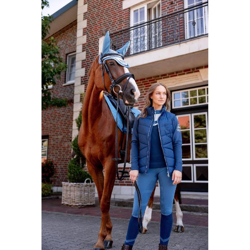 Bezrękawnik firmy Pikeur z kolekcji jesień-zima 2024/2025. Wykonana z pikowanego materiału ze stałym kapturem, lekko błyszcząca satynowa tkanina. Dwukierunkowy zamek błyskawiczny o wyglądzie metalu. Wysoki komfort noszenia dzięki wewnętrznej gumie na dole i pod pachami. Nadruk Pikeur na piersi i na krawędzi kaptura. Skład: 100% poliester