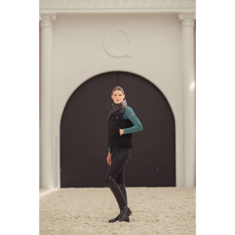 Bezrękawnik damski firmy Covalliero. Pikowana kamizelka z odpinanym kapturem zachwyca uniwersalnym zastosowaniem, zapewniając zarówno ciepło, jak i styl. Klasyczny krój sprawia, że pikowana kamizelka to ponadczasowy must-have dla każdego jeźdźca. Posiada dwie praktyczne kieszenie z rozcięciami.Zapinana na zamek dwukierunkowy. Można prać w pralce w...