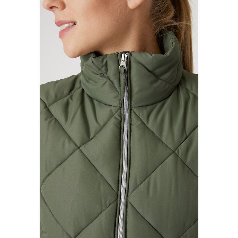 Bezrękawnik damski, ocieplany. Grube wypełnienie zapewnia przyjemne ciepło, a nieprzemakalny, wiatroszczelny materiał sprawdzi się nawet przy najgorszej pogodzie.