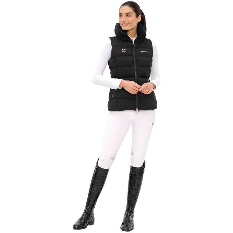 Bezrękawnik damski firmy Spooks. Idealny towarzysz na chłodne jesienne dni w stajni. Wyposażony w wysoki kołnierz wyściałany polarem, kieszenie boczne zapinane na zamek, dwukierunkowy zamek błyskawiczny z przodu z ochroną podbródka. Ozdobiona haftem na na lewej piersi i naszywką z logo SPOOKS na prawej piersi.