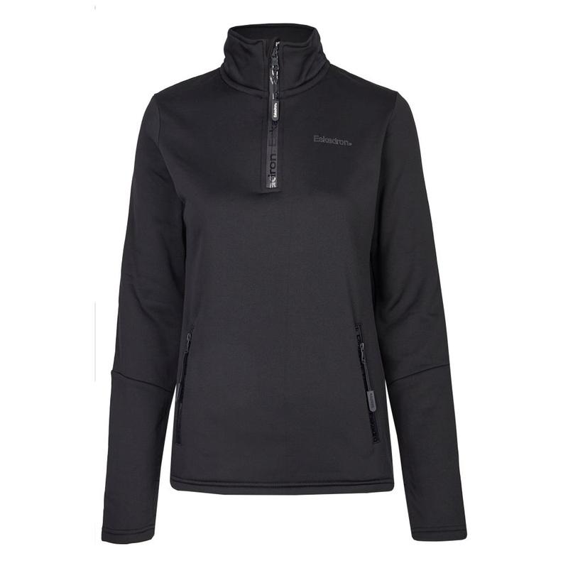 Bluza firmy Eskadron z kolekcji Fanatics 2021/2022 jesień-zima. Wykonana z funkcjonalnego, elastycznego, szybkoschnącego i oddychającego materiału. Od środka podszyta miłym w dotyku polarem, na zewnątrz gładka powierzchnia. Zapinana pod szyją na zamek błyskawiczny. Suwaki zabezpieczone wodoodpornym materiałem. Wyposażona w boczne kieszenie typu "kangur". Ozdobiona napisem "Eskadron" na piersi oraz z tyłu na szyi.