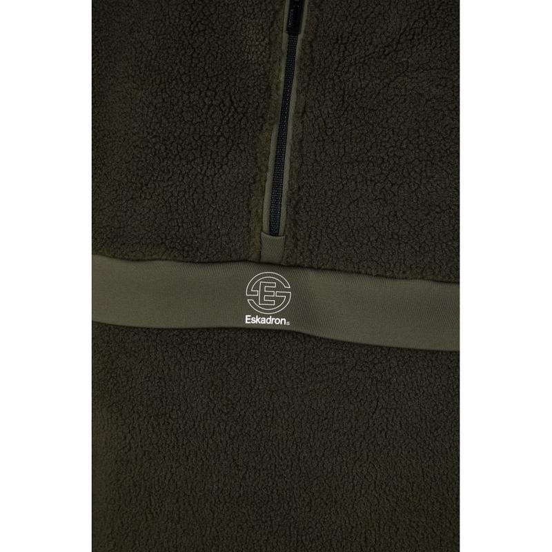 Bluza polarowa z zamkiem błyskawiczny do połowy oraz stójką. Wyposażona w dwie kieszenie zapinane na zamek. Dół bluzy wyposażony w gumkę, umożliwiającą ściągnięcie i nadanie bluzie innego kroju oraz dopasowanie do sylwetki.