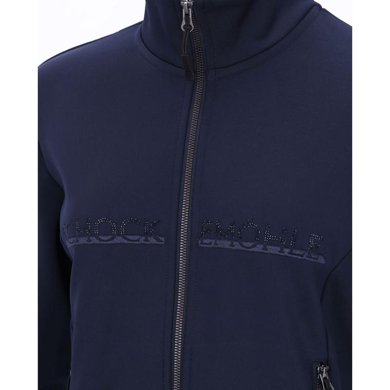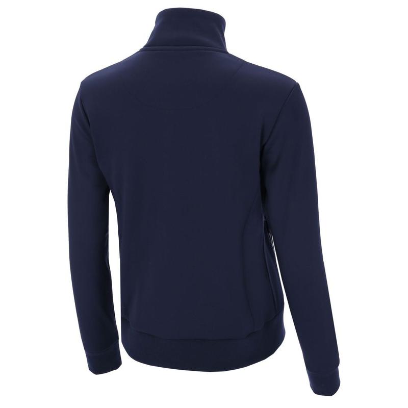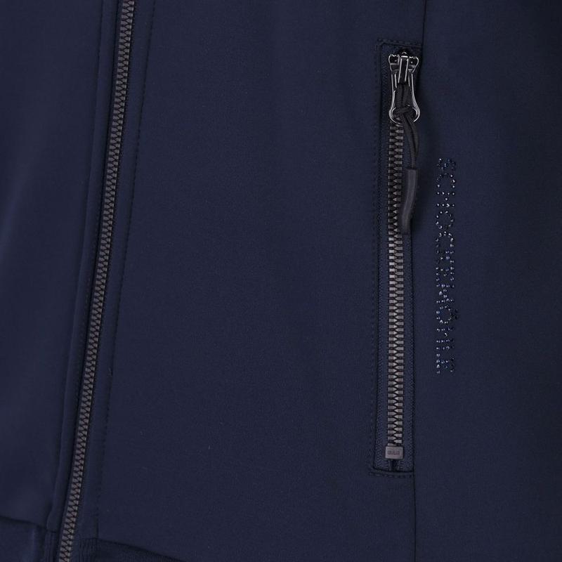 Funkcjonalna damska bluza wyróżnia się sportowym i eleganckim krojem, z wysoką stójką. Wytrzymałe, prążkowane mankiety i zakończenia rękawów zapewniają wygodne dopasowanie. Ozdobny haft z logo i błyszczącymi cyrkoniami na piersi oraz efektowne logo z koniem z cyrkonii na rękawie dodają jej stylowego charakteru.