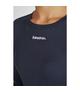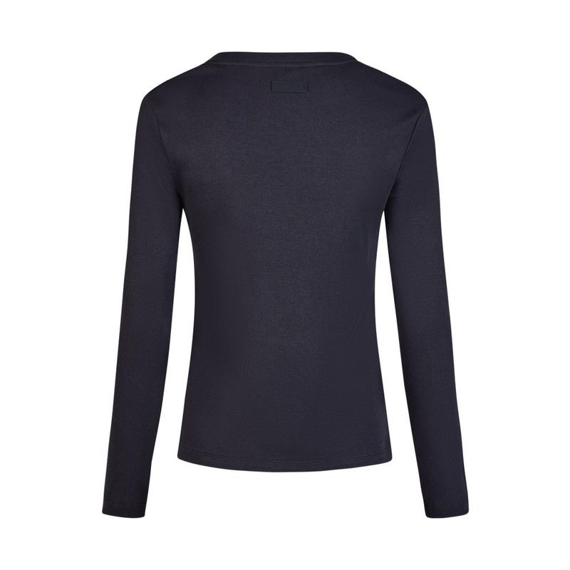 Model w ponadczasowym, granatowym kolorze wyróżnia się dopasowanym krojem oraz okrągłym dekoltem, który podkreśla minimalistyczny, sportowy charakter. Struktura żebrowanej tkaniny nadaje całości nowoczesnego wyglądu i zwiększa wygodę użytkowania.