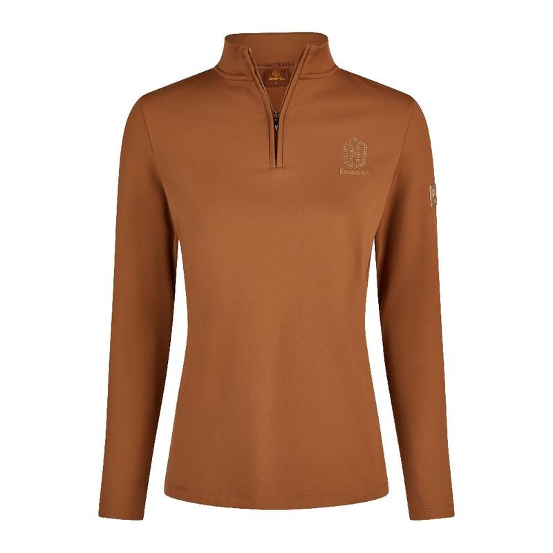 Funkcjonalna bluzka wykonana z dżerseju rozciągliwego w 4 kierunkach. Zapinana na zamek do połowy. Dzięki elastyczności materialu zapewnia nieograniczoną swobodę ruchów, jednocześnie zachowując funkcję oddychalności oraz odprowadzania wilgoci. Dopasowany krój, który idealnie podkreśla sylwetkę. Stójka z emblematem Heritage z tyłu.