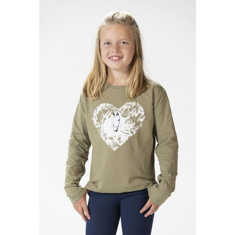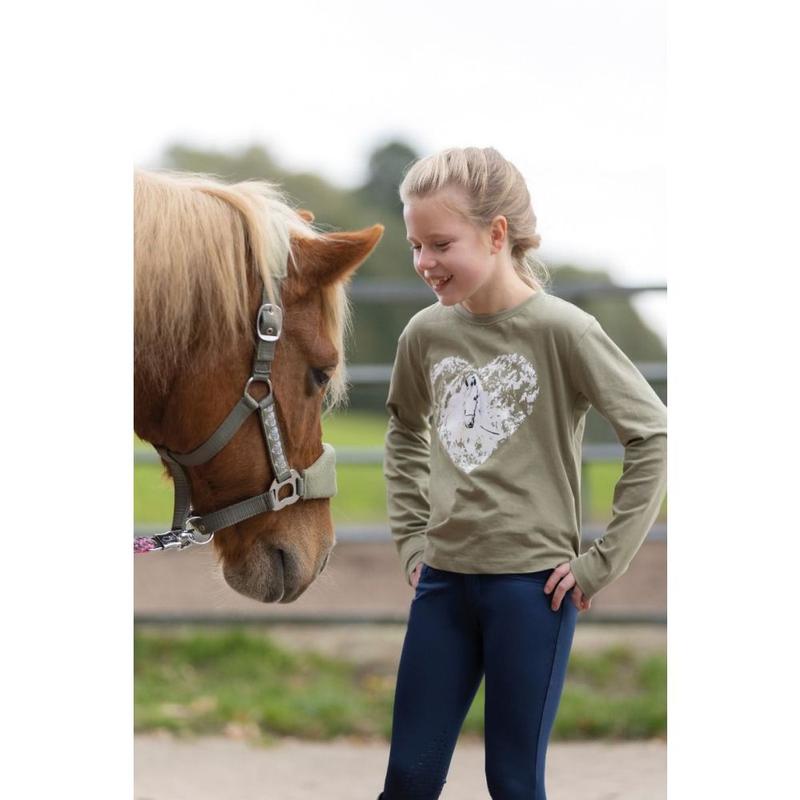Bluzka młodzieżowa HKM Horse Spirit z konikiem oliwkowa