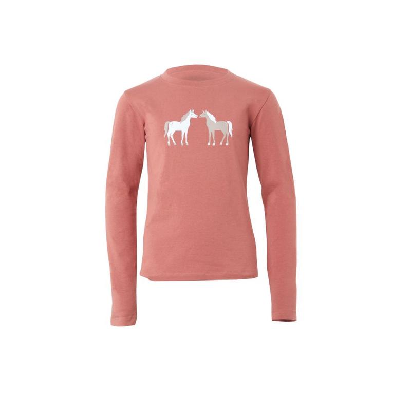 Koszulka dziecięca Piccola Heart firmy HKM, różowa. Wykonana z wysokiej jakości materiału, zapewnia pełen komfort w poruszaniu się. Koszulka z przodu posiada nadruk z motywem jeździeckim, który z pewnością spodoba się niejednej dziewczynce.