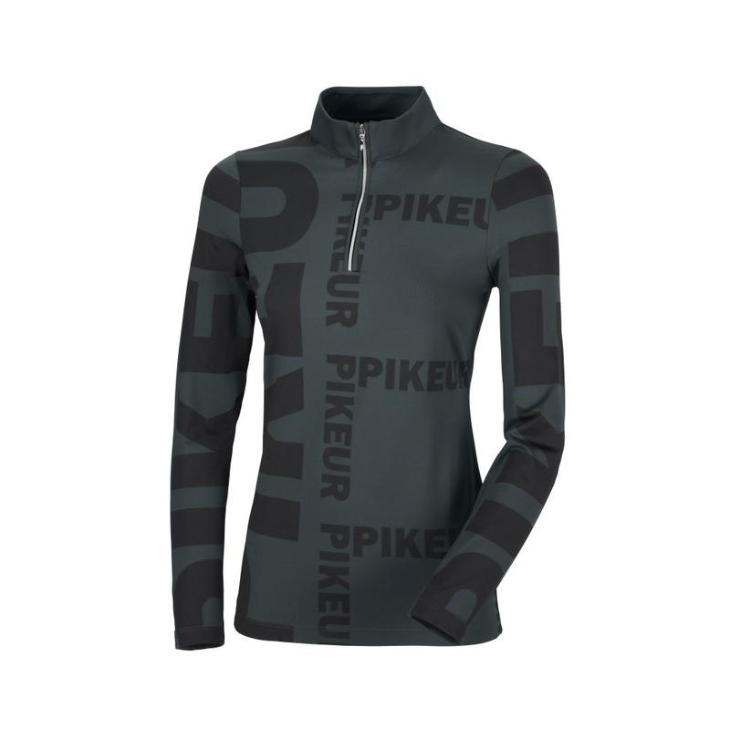 Bluza firmy Pikeur z kolekcji jesień-zima. Wykonana z materiału technicznego, ozdobionego nadrukami logo. Elastyczna, oddychająca i lekka na ciele. Pod szyją wykończona stójką zapinaną na zamek. Posiada taliowany krój idealnie podkreślający figurę.