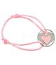 Śliczna bransoletka firmy York. Wykonana ze sznureczka w pastelowym kolorze, zawieszka przedstawia wizerunek dwóch końskich głów i serca w tym samym kolorze co sznurek. Sznurek posiada możliwość regulacji obwodu od 16 cm do 25 cm.