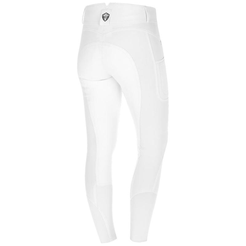 Wysokiej klasy bryczesy jeździeckie z lejem skórzanym zachwycają nie tylko wyjątkową jakością, ale również funkcjonalnością. Wyposażone w praktyczną kieszeń na telefon komórkowy, dzięki czemu masz go zawsze pod ręką podczas jazdy.