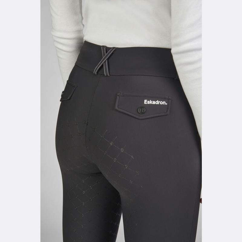 Bryczesy Lea są wykonane z technicznego, wodoodpornego, rozciągliwego materiału i mają wyższy i szerszy pas, zapewniający maksymalny komfort jazdy. Posiada wyszywane logo na lewym udzie. Fantastyczna, wydajna tkanina z wieloma funkcjami, w tym szybkim. Wyposażona w kieszeń na telefon. Zapięcie z przodu na specjalnie zaprojektowany guzik...