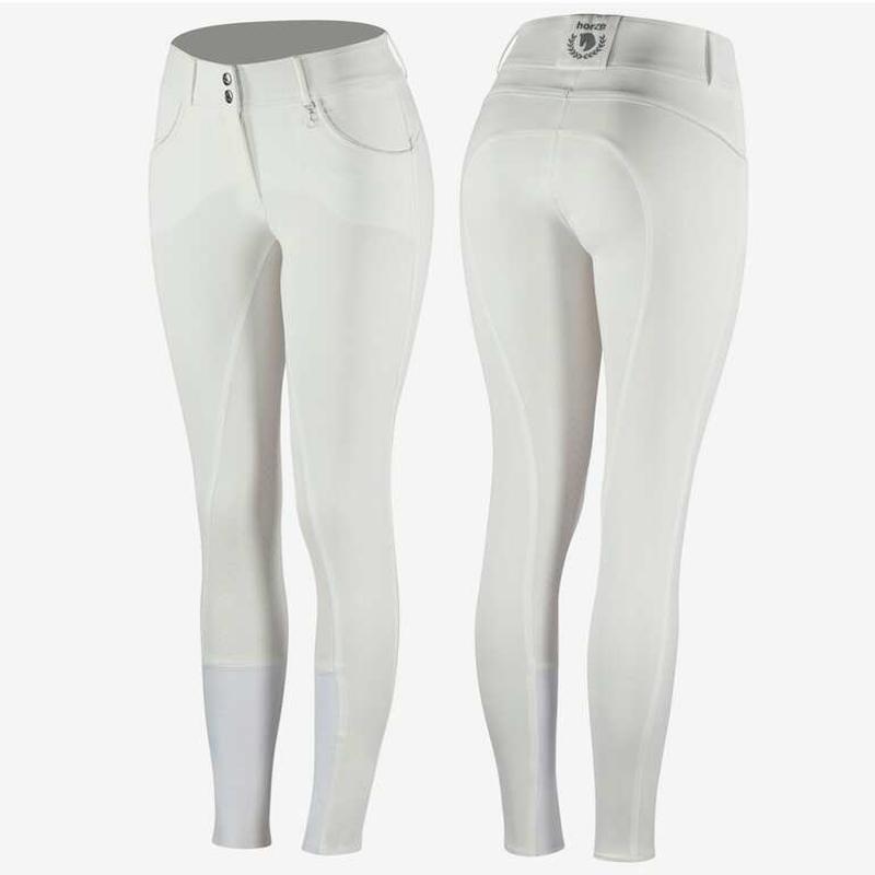 Klasyczne bryczesy damskie firmy Horze. Bardzo modny model ,wykonany wysokiej jakości materiału Posiadają pełen lej silikonowy zapewniający doskonałą przyczepność w siodle.