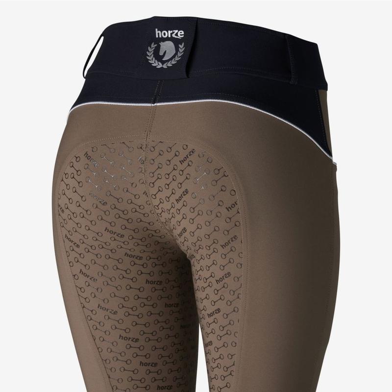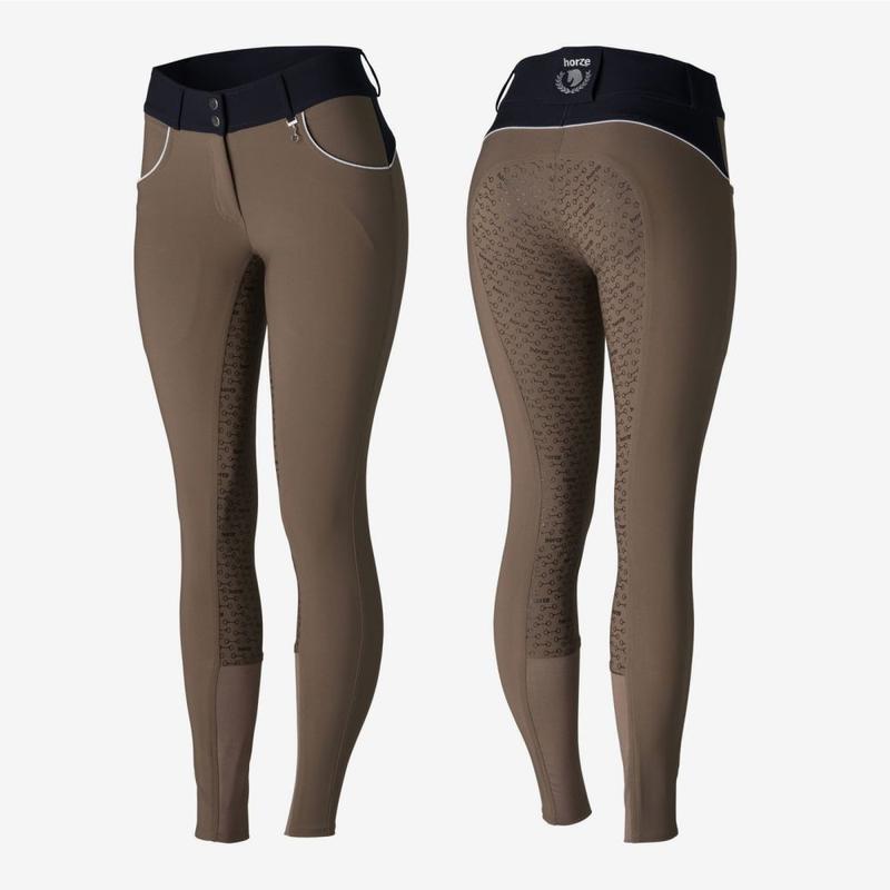Klasyczne bryczesy damskie firmy Horze. Bardzo modny model ,wykonany wysokiej jakości materiału Posiadają pełen lej silikonowy zapewniający doskonałą przyczepność w siodle.