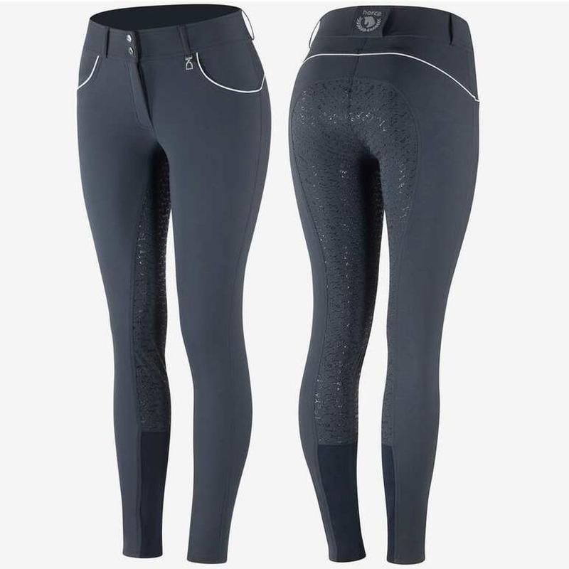 Klasyczne bryczesy damskie firmy Horze. Bardzo modny model ,wykonany wysokiej jakości materiału Posiadają pełen lej silikonowy zapewniający doskonałą przyczepność w siodle.