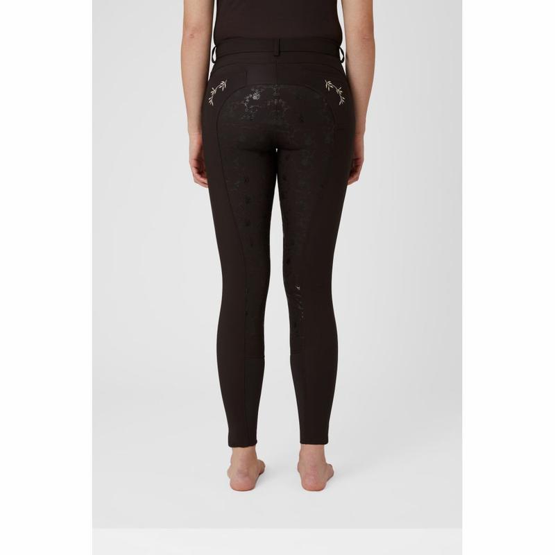 Atrakcyjne bryczesy w pięknych kolorach, wykończone ozdobnym kwiatowym motywem.