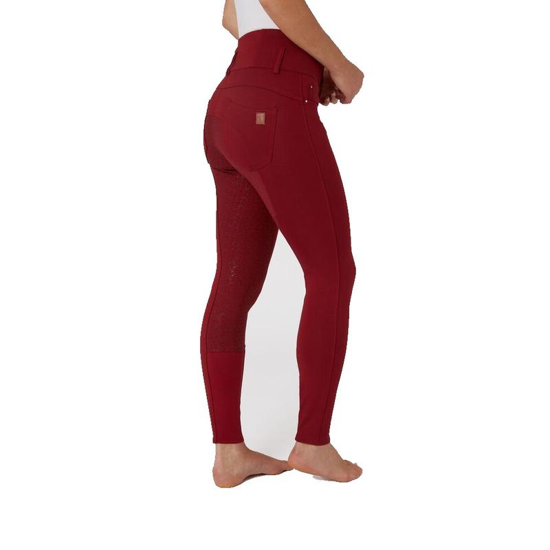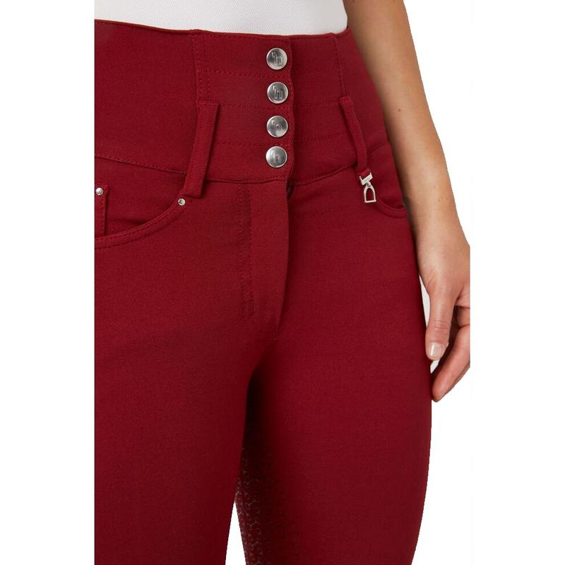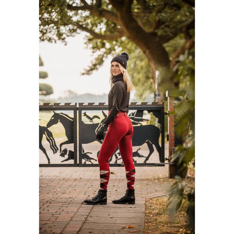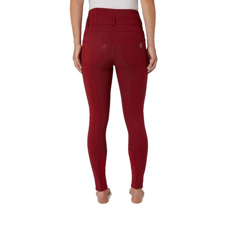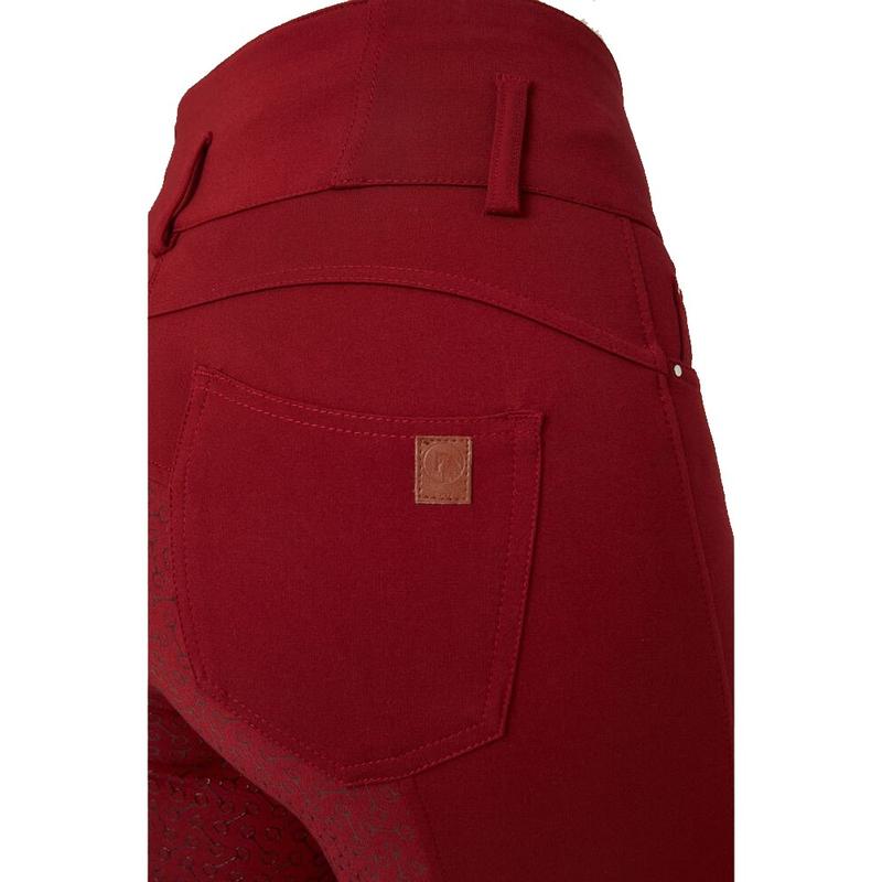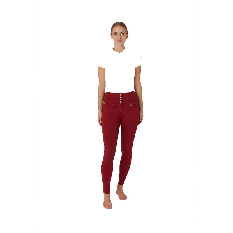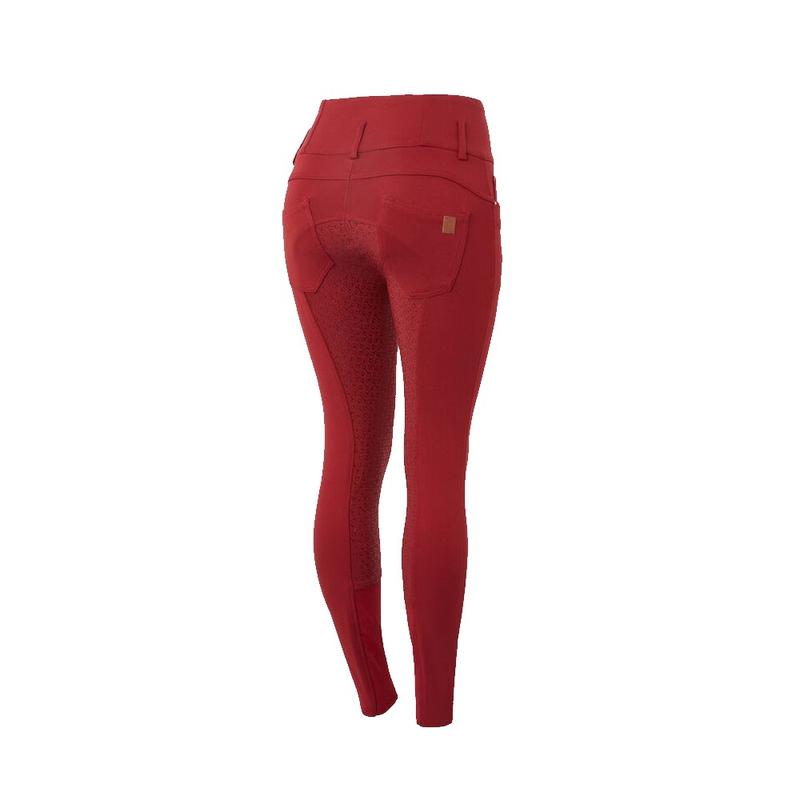 Bryczesy damskie Horze Tara z pełnym lejem silikonowym i wysokim stanem czerwone