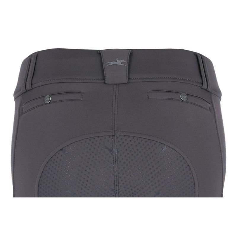 Uniwersalne jeździeckie bryczesy z czesaną stroną wewnętrzną, zapewniającą wygodę noszenia. Silikonowy nadruk zapewnia doskonałą stabilność w siodle. Praktyczne kieszenie na telefon po obu stronach zapewniają dodatkowe miejsce do przechowywania. Gumowy nadruk z logo z przodu, a także gumowe nadruki z logo na lewej nogawce i tylnej szlufce na pasek nadają spodniom nowoczesny charakter. Całość dopełniają szwy dzielące i kieszenie z patkami zapinane na zatrzaski z logo.