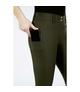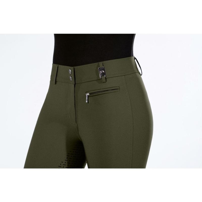 Bryczesy damskie z wysokim stanem firmy Pikeur. Przyjemnie lekka tkanina z efektem regulacji temperatury i właściwościami antybakteryjnymi: pochłania zapachy. Specjalna edycja z subtelnymi dodatkami w kolorze jasnego złota: zapięcie na klips, napy i nadru