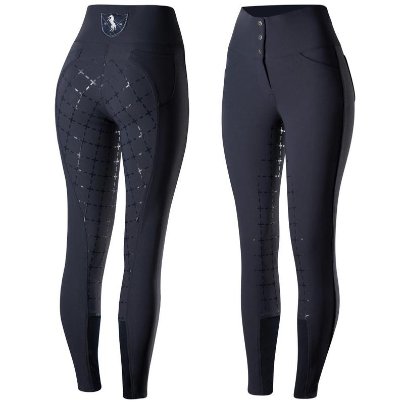 Legginsy damskie firmy Horze z pełnym lejem silikonowym. Wykonane z izolującego i oddychającego materiału. Komfortowe i elastyczne. Miękka szczotkowana wewnętrzna strona, pas z tkaniny zewnętrznej z szlufkami. Kieszeń na telefon na udach. Silikonowy nadruk z pełnym lejem. Długość nogawki wewnętrznej 70 cm we wszystkich rozmiarach.Opis techniczny:82 %...
