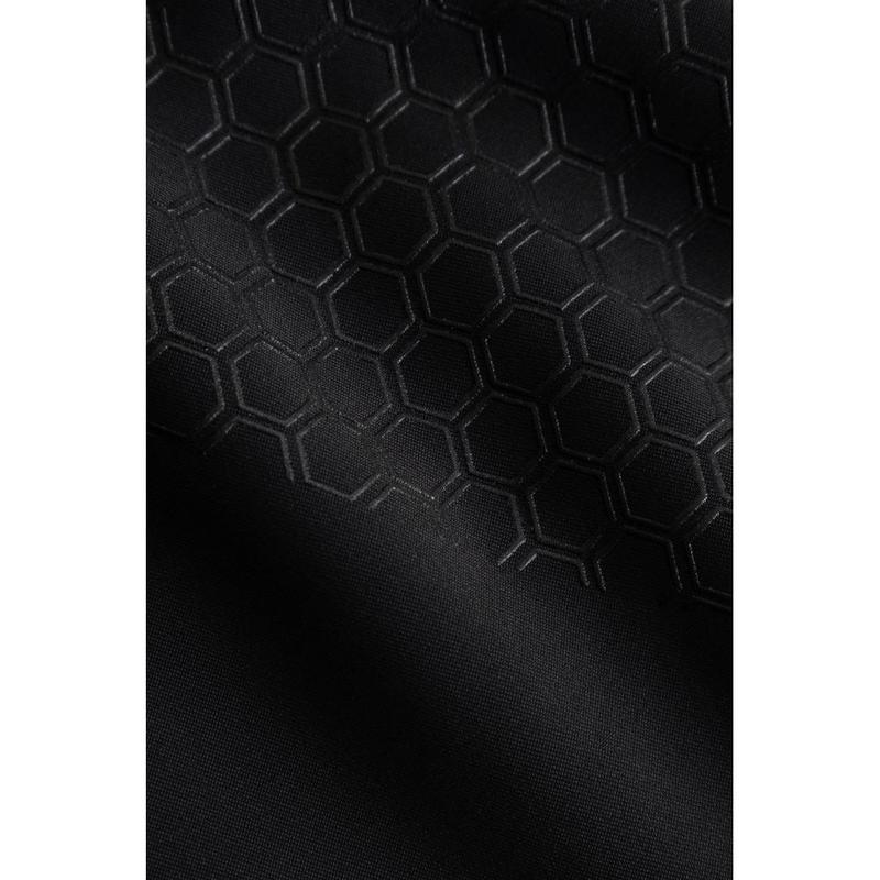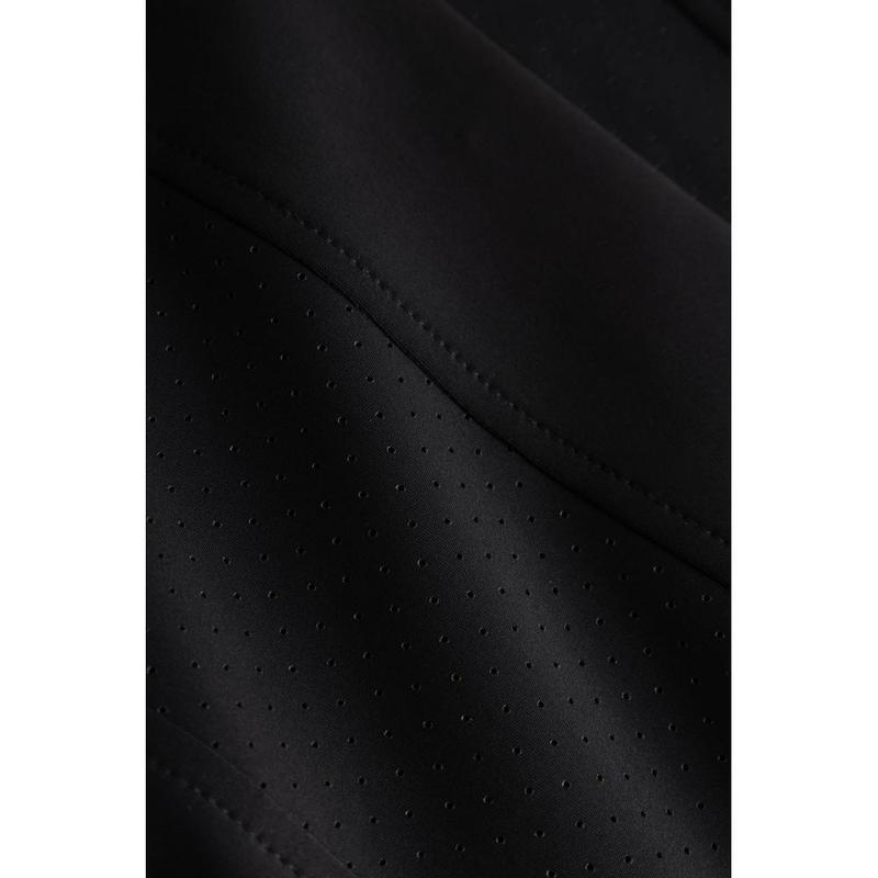 Oddychający materiał, perforowane obszary wspomagają cyrkulację powietrza. Kieszenie na udach pomieszczą urządzenie mobilne.