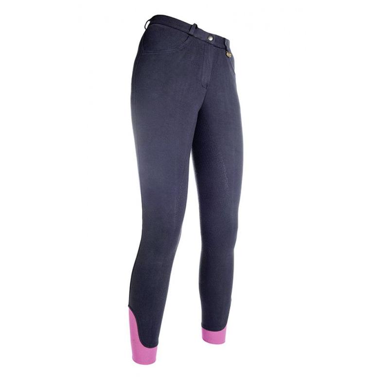 Bryczesy firmy HKM.Wykonane z wysokiej jakości oddychającego materiału.Nogawki zakończone elastycznymi wstawkami.Lej silikonowy gwarantujący dobrą przyczepność podczas jazdy.Materiał: 95% bawełna, 5% elastan