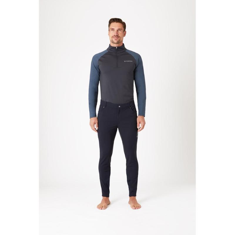 Klasyczne całosezonowe bryczesy z pełnym lejem z 2 jeansowymi kieszeniami z przodu i jedną kieszenią zapinaną na suwak z tyłu. 65% poliamid, 29% poliester, 6% elastan, dolny karczek: 82% poliester, 18% elastan