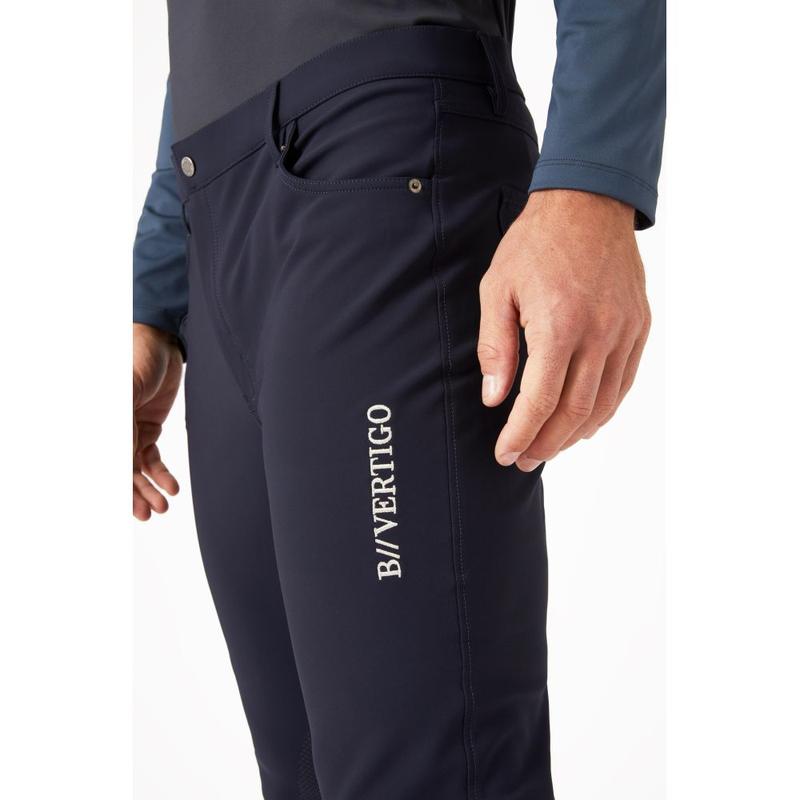 Bryczesy męskie techniczne z lejem kolanowym firmy B Vertigo. Wyposażone w 6 kieszeni, duża kieszeń na telefon zapinana na zamek, zapięcie na guzik i szlufki na pasek. Ozdobione logo B Vertigo wyhaftowanym na przedniej kieszeni i naszywką z logo producenta z tyłu. Skład: 76% poliamid, 24% elastan.Prać w temp. 40 stopni z podobnymi kolorami.Nie używać...