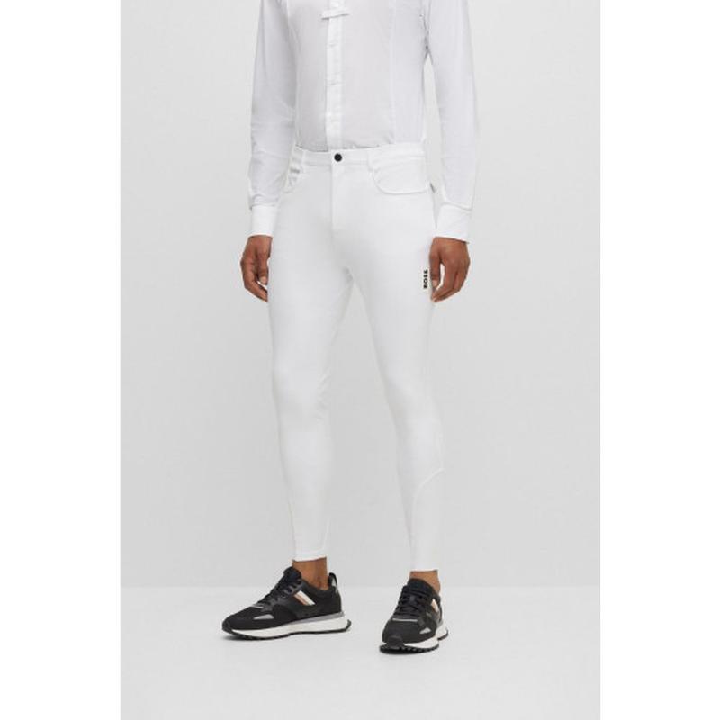 Bryczesy firmy Boss Equestrian JIM posiadają pełen lej silikonowy.Wykonane są z oddychającej jakości Power Sport, która zapewnia maksymalny komfort. Mają wyprofilowany pas Zamek błyskawiczny i 1 haczyk do zapinania z logo BOSS.Materiał:75% poliamid, 25% elastan.