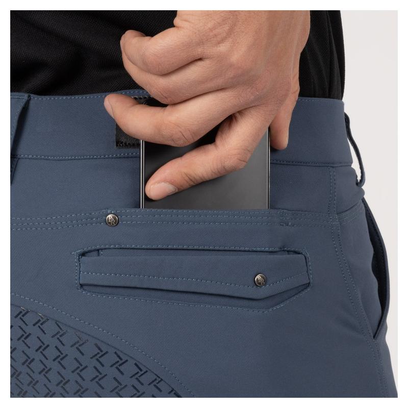Bryczesy męskie firmy BR. Wykonane z bardzo wygodnego materiału rozciągliwego w 4 kierunkach. Wyposażone w dwie kieszenie z przodu i kieszeń na telefon z tyłu oraz elastyczny pas ze szlufkami na pasek.