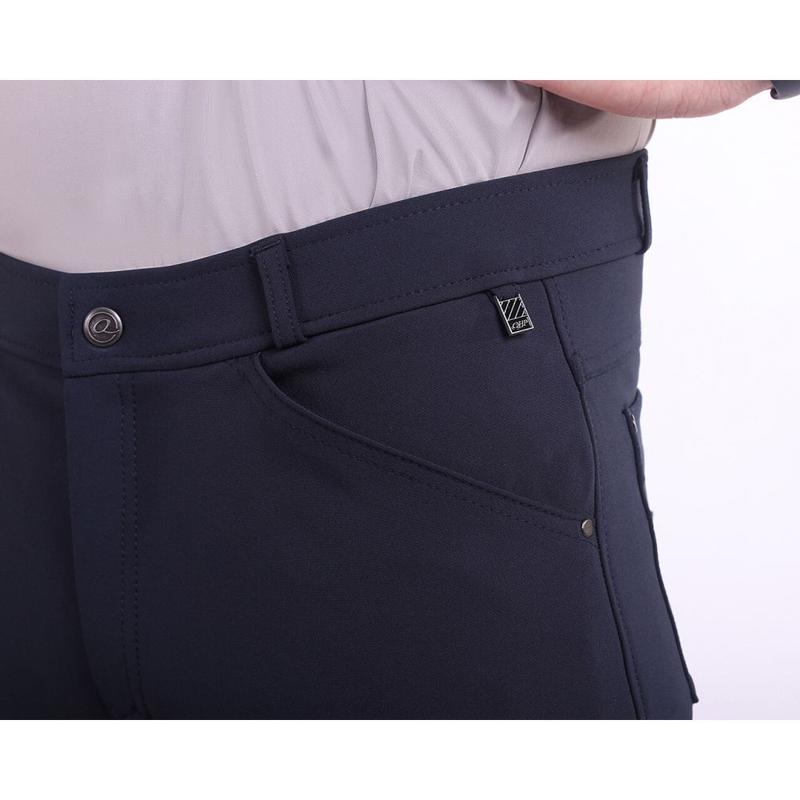 Klasyczne całosezonowe bryczesy z pełnym lejem z 2 jeansowymi kieszeniami z przodu i jedną kieszenią zapinaną na suwak z tyłu. 65% poliamid, 29% poliester, 6% elastan, dolny karczek: 82% poliester, 18% elastan