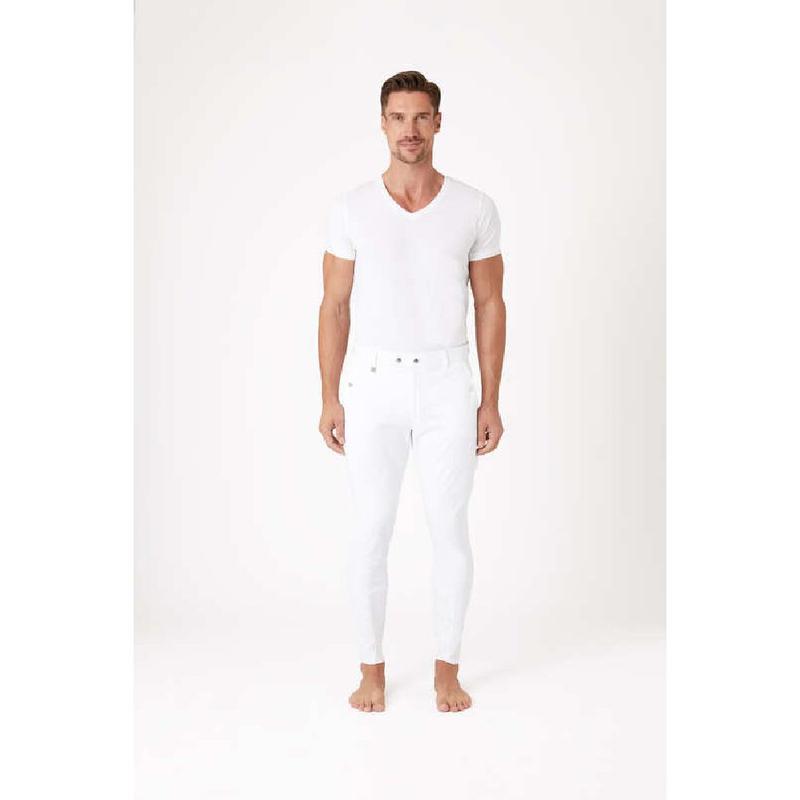 Bryczesy męskie z silikonowym lejem kolanowym Horze Grand Prix białe