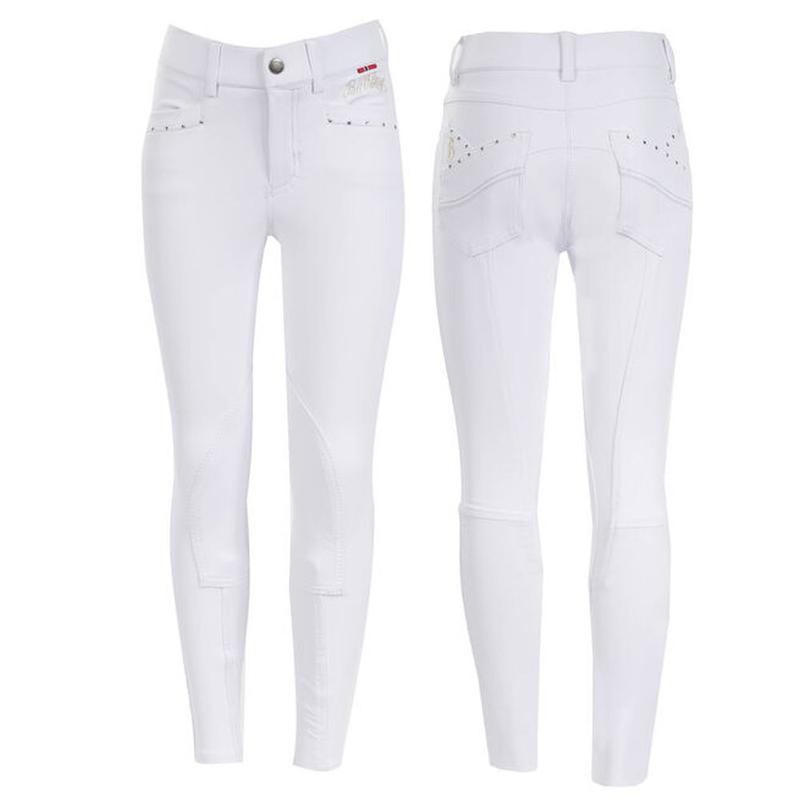 Młodzieżowe bryczesy z oryginalnymi kryształkami Swarovskiego. Uszyte z wytrzymałej, funkcjonalnej tkaniny z ochroną przed promieniami UV. Wykonane z oddychającej, odprowadzającej wilgoć tkaniny stretchowej rozciągającej się w 4 kierunkach. Wyposażone w elastycznie wykończone nogawki, suwak YKK i guzik Gutos. Średnio wysoka talia.