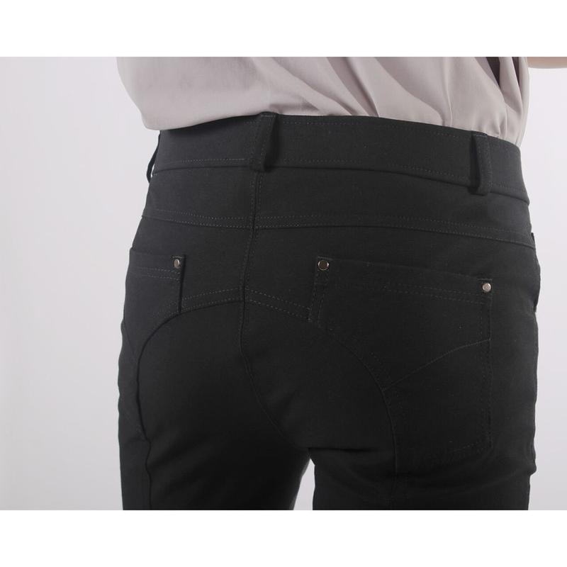 Bryczesy młodzieżowe firmy QHP. Posiadają boczne kieszenie z przodu, oraz w jednej z nich kieszonkę na monety. Wszystkie kieszenie wykończone są metalowymi ćwiekami.