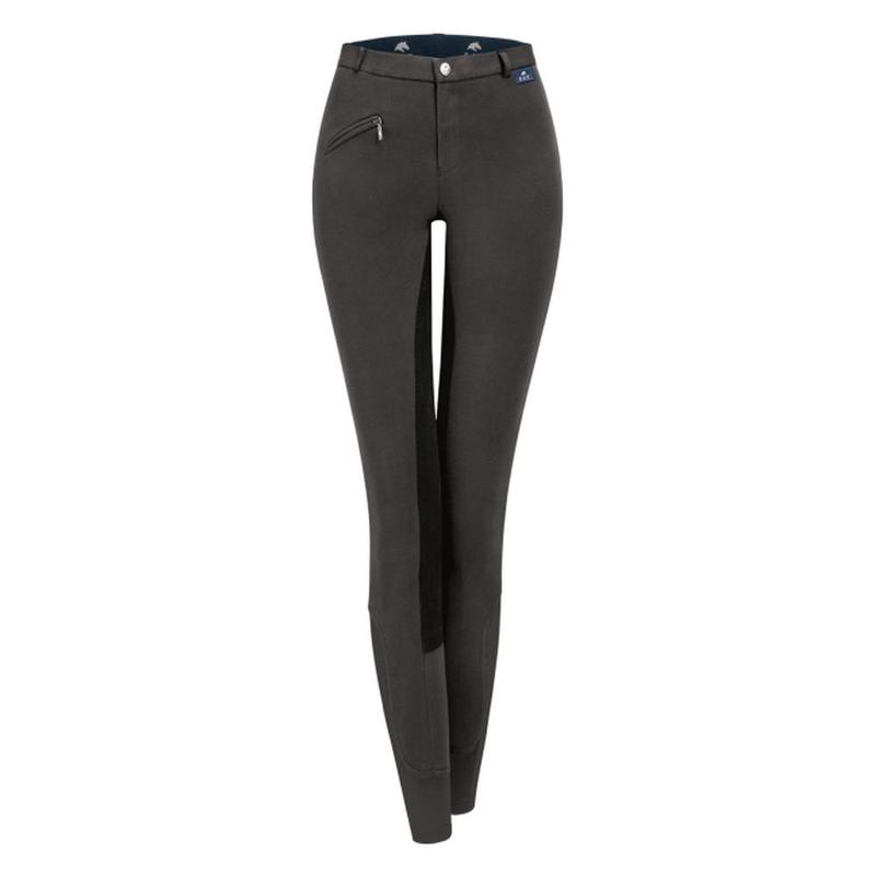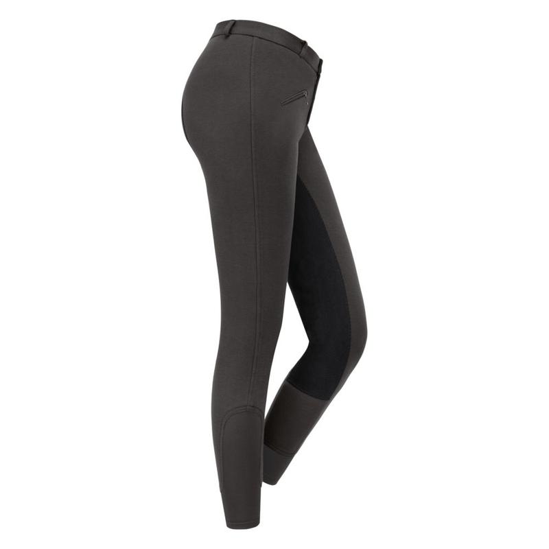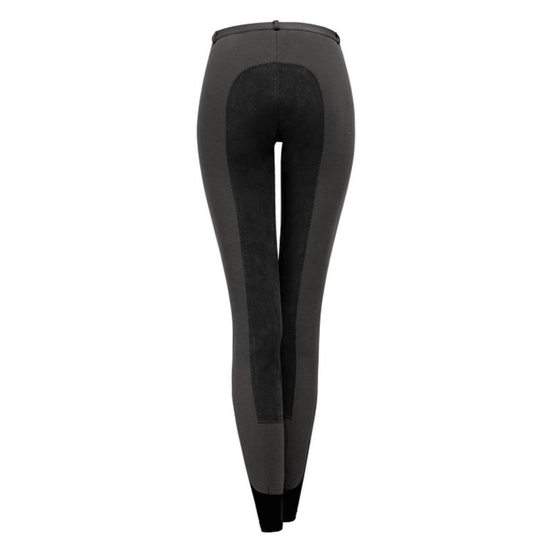 Bryczesy młodzieżowe firmy Waldhausen. Pełne siedzenie ze skóry syntetycznej. Kieszeń na zamek z przodu.