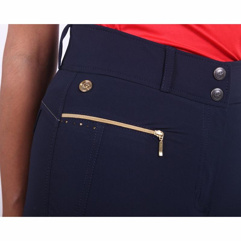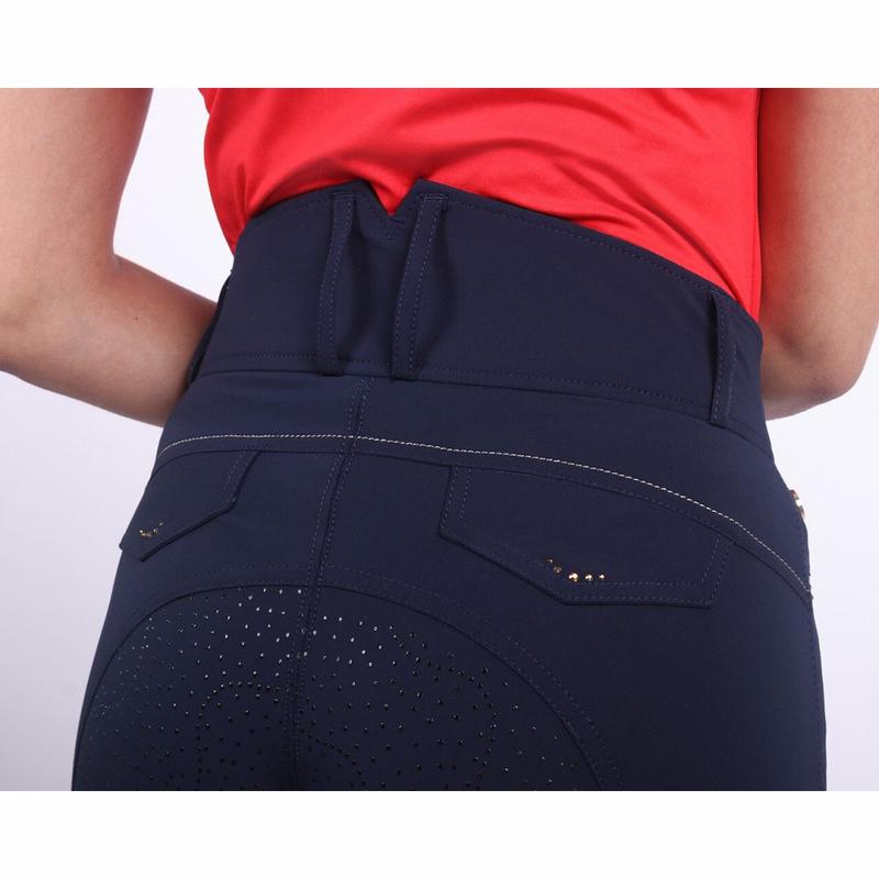 Bryczesy QHP Tara Navy z pełnym lejem.