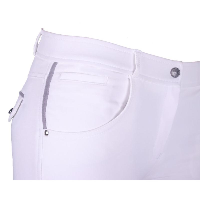 Bryczesy Lea są wykonane z technicznego, wodoodpornego, rozciągliwego materiału i mają wyższy i szerszy pas, zapewniający maksymalny komfort jazdy. Posiada wyszywane logo na lewym udzie. Fantastyczna, wydajna tkanina z wieloma funkcjami, w tym szybkim. Wyposażona w kieszeń na telefon. Zapięcie z przodu na specjalnie zaprojektowany guzik...