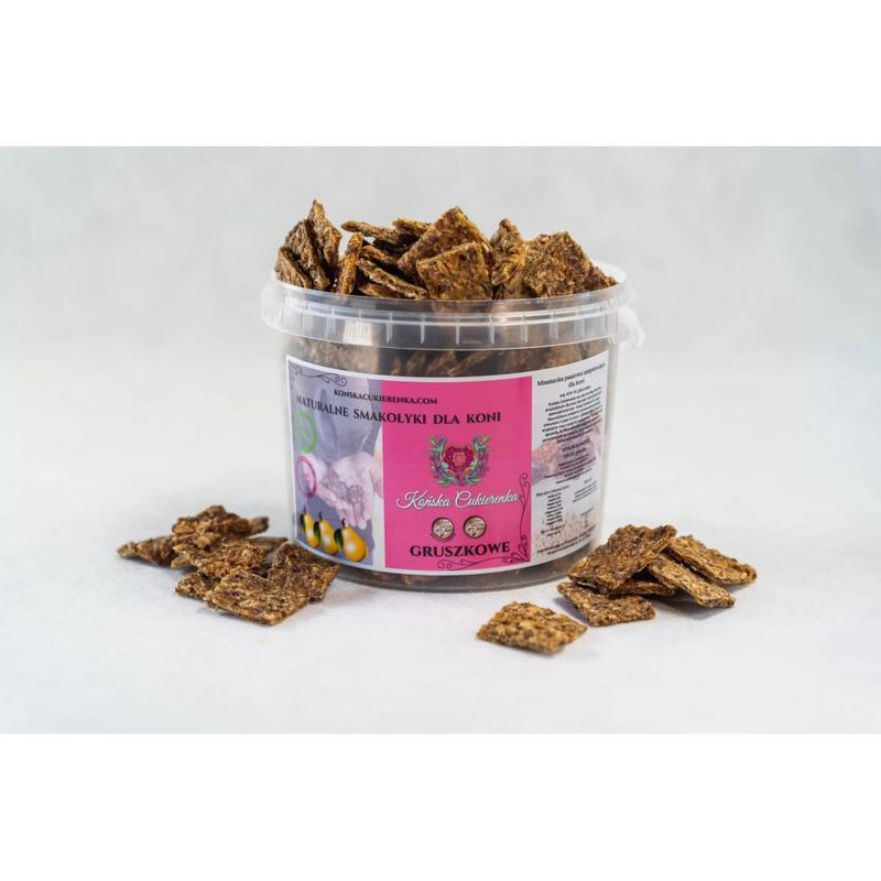 Bezzbożowe, ziołowe smakołyki dla koni z firmy Kerbl. Z naturalnym poziomem minerałów i witamin. Bardzo niska zawartość cukrów i skrobi. 100% naturalnych składników, bez sztucznych dodatków. Masa netto 1kg.