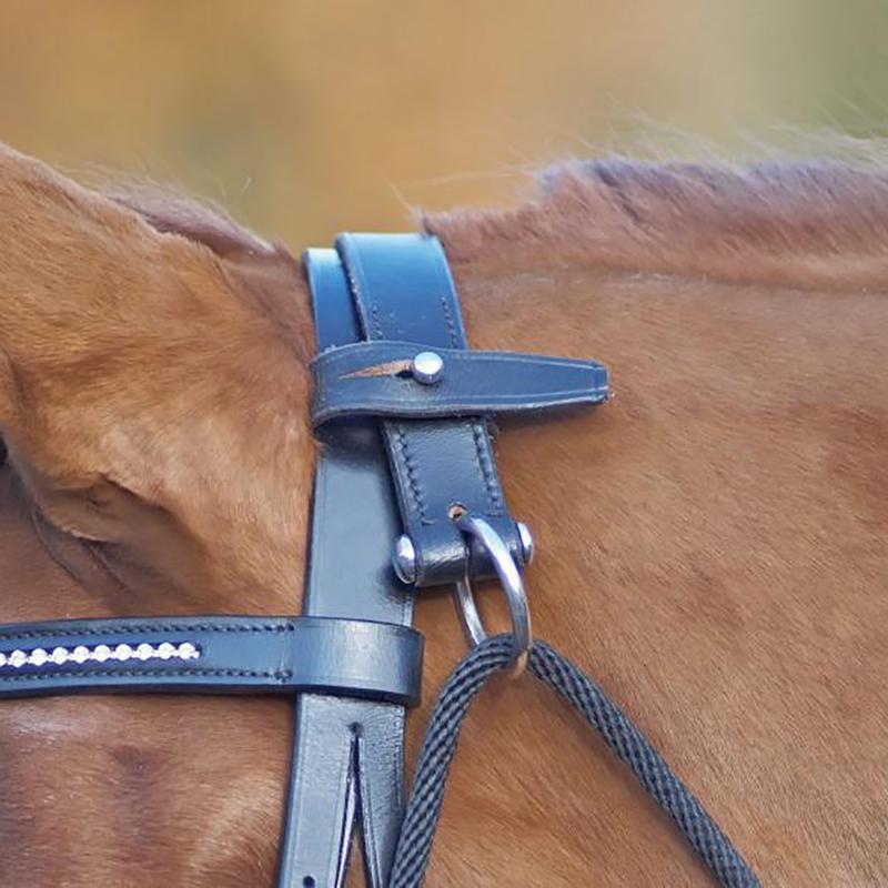 Czambon kompletny firmy Busse. Wodza pomocnicza służąca do wydłużenia mięśni grzbietu oraz podstawienia zadu podczas pracy z ziemi. Wykonany z wysokogatunkowej skóry, składa się z części podstawowej o regulowanej długości, potylicznej oraz sznurka zakończ