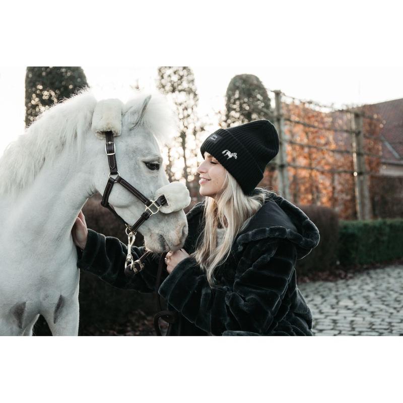 Wykonana z miękkiej, starannie wyselekcjonowanej dzianiny, zapewnia przyjemne otulenie, komfort termiczny i perfekcyjne dopasowanie. Delikatne, lecz dopracowane akcenty – naszywka Kentucky Horsewear oraz elegancki haft konia – podkreślają prestiż marki, znanej z luksusowych akcesoriów jeździeckich.
