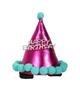 Czapka urodzinowa firmy QHP ozdobiona srebrnym, błyszczącym napisem „happy birthday”. Posiada pompony u dołu i u góry. Możliwość mocowania za pomocą dwóch szlufek na rzepy.