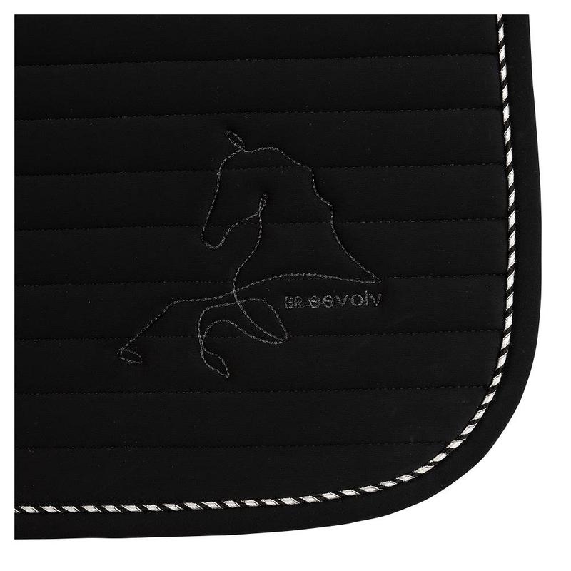 Czaprak firmy BR. Doskonale utrzymuje się na miejscu dzięki anatomicznie ukształtowanemu tylnemu szwowi. Posiada podszewke regulującą wilgoć. Wyposażony w paski z rzepami. Ozobiony grafiką producenta na pasku popręgowym i ozdobnym sznurkiem wokół czapraka.
