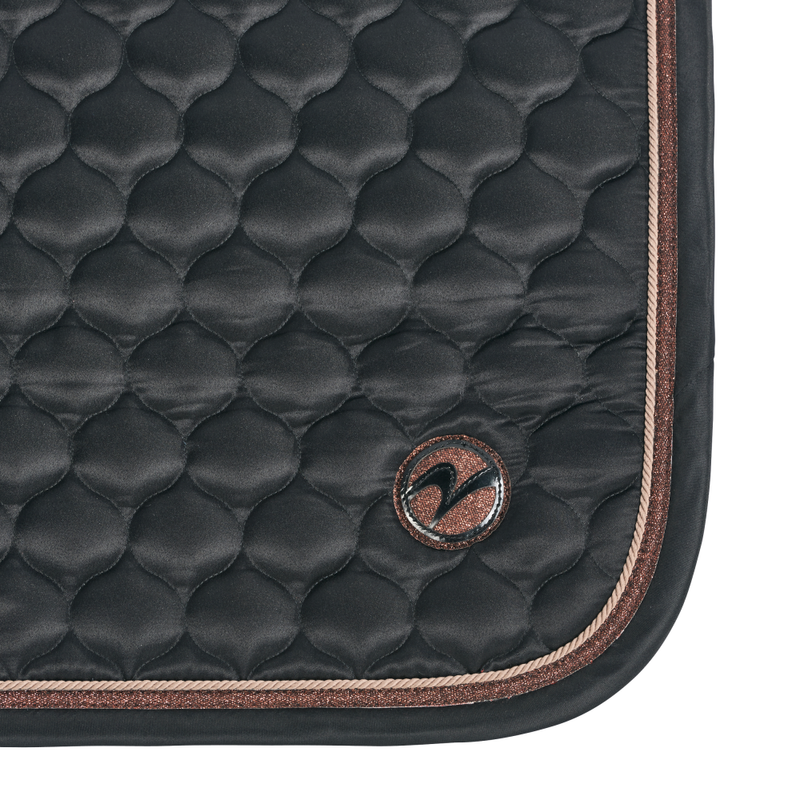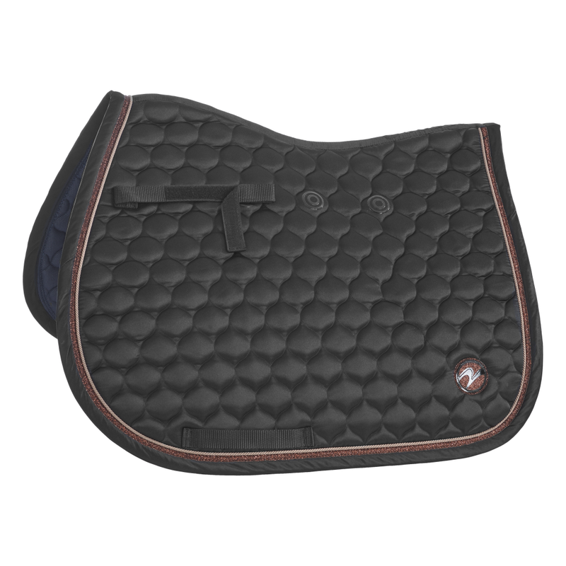 Czaprak firmy Busse. Wykonany z wysokiej jakości materiałów. Silikonowe aplikacje zapobiegają ślizganiu się czapraka pod siodłem. Obszycie i cholewka z satyny poliestrowej. Spód ze szczególnie regulującego wilgoć, szybkoschnącego materiału funkcjonalnego (poliester): OPTIdry. Można prać w pralce do 30 ° C