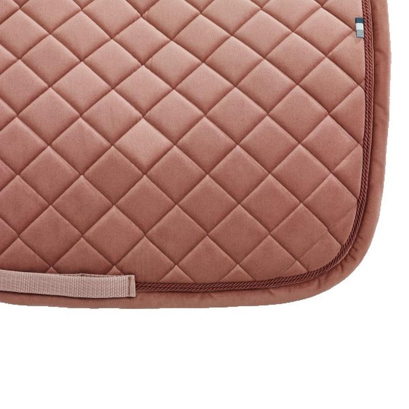 Czaprak firmy Busse. Anatomicznie wyprofilowany czaprak z wbudowanym ogranicznikiem w postaci poduszki w obszarze łopatek dla optymalnego, trwałego ułożenia bez mocowania przystuł. Posiada ponadczasowe pikowanie w prostokąty i obszycie dwoma błyszczącymi sznurkami. Materiał wierzchni i lamówka z miękkiej tkaniny welurowej. Odporny na zniekształcenia, dobrze amortyzujący wypełnienie z pianki. Spód czapraka wykonany z materiału bardzo dobrze odprowadzającego wilgoć i szybkoschnącego materiału funkcjonalnego.