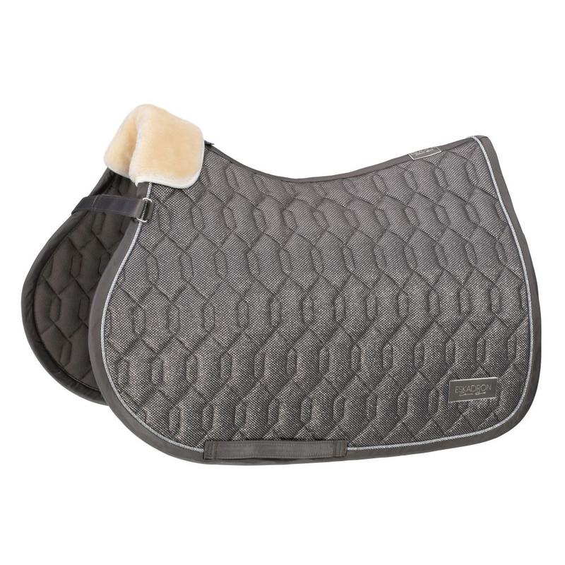 Czaprak firmy Eskadron z kolekcji Classic Sports S/S wiosna-lato 2022. Wykonany z wysokiej jakości materiałów, z siateczki z brokatem. Elegancji nadaje mu elegancki sznurek z lureksu na błyszczącym brzegu, emblemat po obu stronach oraz poduszki ze sztucznego futerka. Wyposażony w parcianą pętle z potrójną opcją mocowania dla idealnego pozycjonowania.