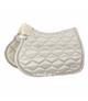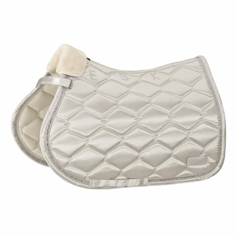 Czaprak firmy Eskadron z kolekcji Classic Sports S/S wiosna-lato 2022. Wykonany z wysokiej jakości materiałów. Elegancji nadają mu poduszki ze sztucznego futerka oraz zdobienia kryształkami na satynowej szerokiej błyszczącej lamówce - kombinacja: sznur-kryształ-sznur. Wyposażony w parcianą pętle z potrójną opcją mocowania dla idealnego pozycjonowania.
