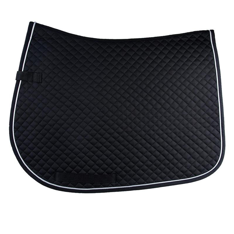Czaprak firmy HKM delikatnie pikowany. Wykonany z materiału który doskonale wchłania pot. Posiada wewnątrz wkładkę z waty poliestrowej. Dzięki swojemu krojowi idealnie dopasowuje się do siodła. Posiada paski do siodła zapinane na rzepy. Materiał: 65% pol
