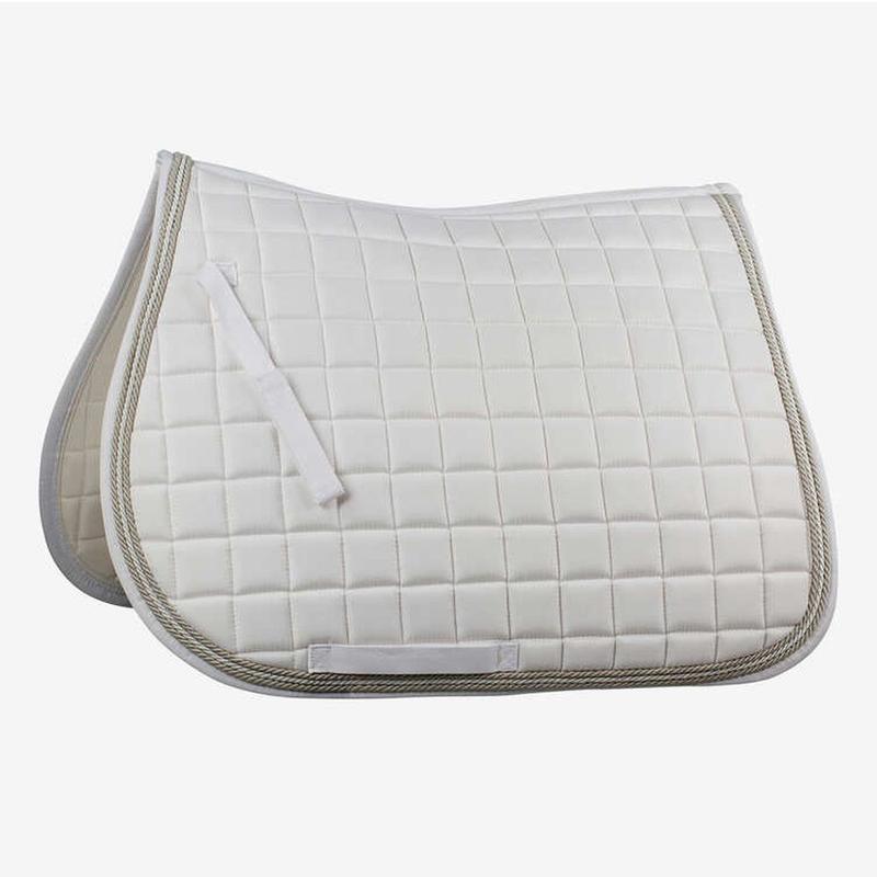 Czaprak firmy Eskadron z kolekcji Heritage 2025/2026. Wykonany z matowego zewnętrznego materiału. Duże pikowanie o średnio grubym wypełnieniu. Wyposażony w silikonowe panele w miejscu siodła w celu jego lepszej stabilizacji. Lamówka ozdobiona blyszczącym sznurkiem oraz kryształkami. Materiał: 100% poliester.