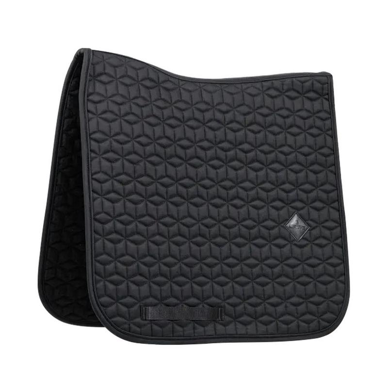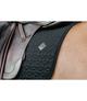 Czaprak firmy Kentucky. Zewnętrzna część czapraka wykonana jest z poliestru przypominającego bawełnę i ma eleganckie pikowanie w kształcie sześcianów. Po lewej stronie czapraka znajduje się niewielka naszywka ze skóry wegańskiej z logo Kentucky, pod logo znajduje się wystarczająco dużo miejsca na haft. Wyściółka czapraka to odprowadzająca wilgoć mieszanka bawełny i poliestru.